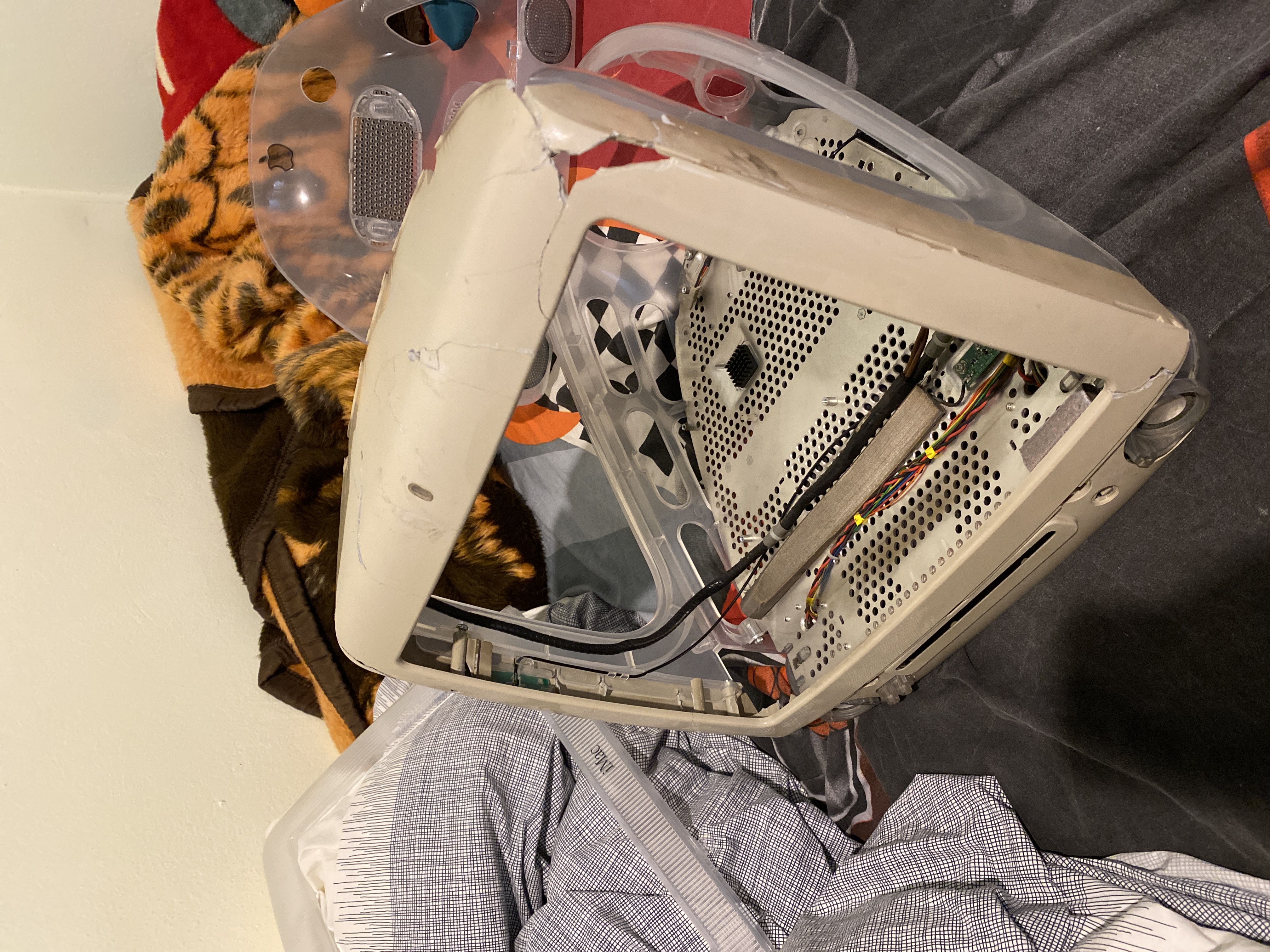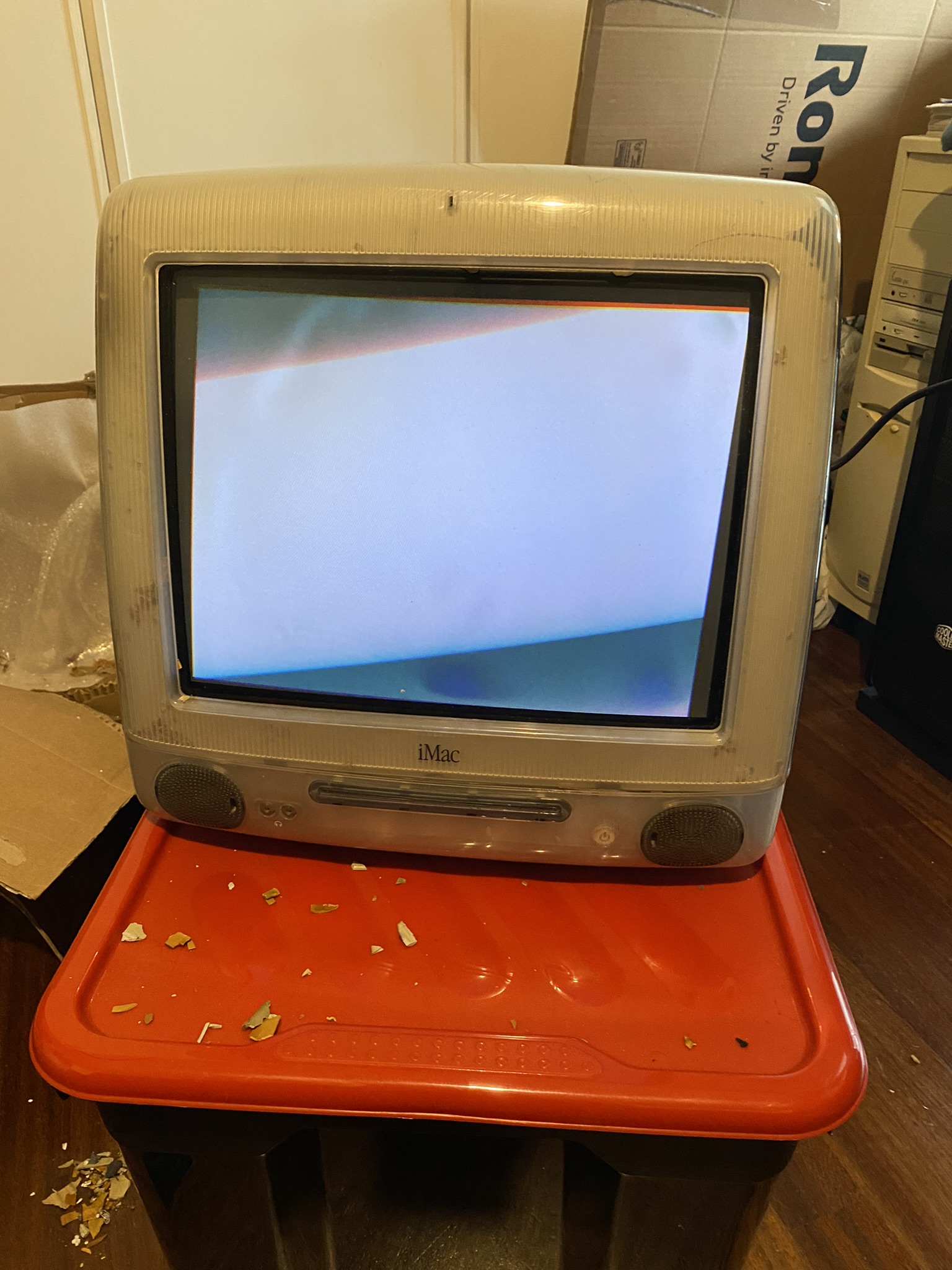 This is actually a tale of 2 iMac G3’s. A 600Mhz Graphite I got from Ebay and a 350Mhz Indigo from Facebook Marketplace. First off, we got the Graphite. It sadly got demolished in shipping :( The inner bezel on all slot loading iMac G3’s has become really brittle over the years because of the fire retardants Apple put in the plastic (according to Google). Meaning iMac G3’s can’t really be shipped without becoming 1000 piece jigsaw puzzles… I learnt that the hard way…