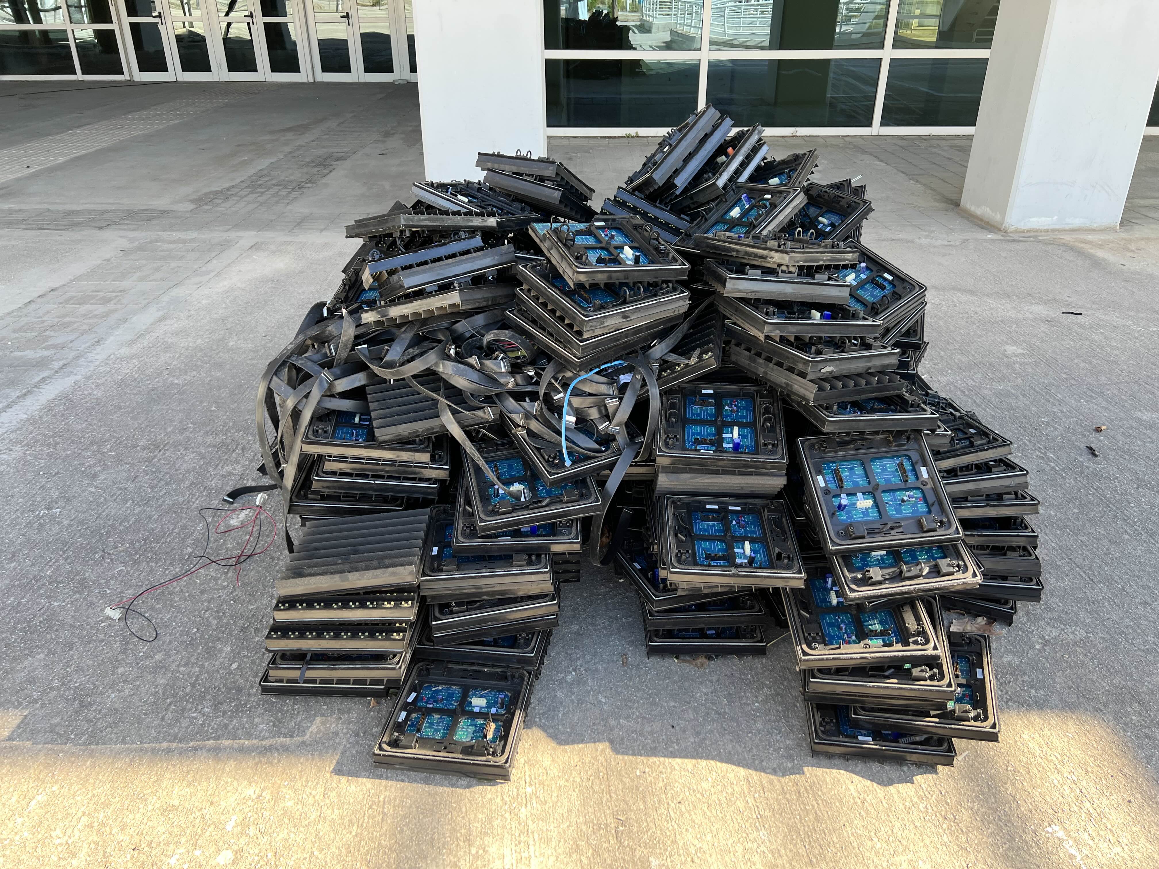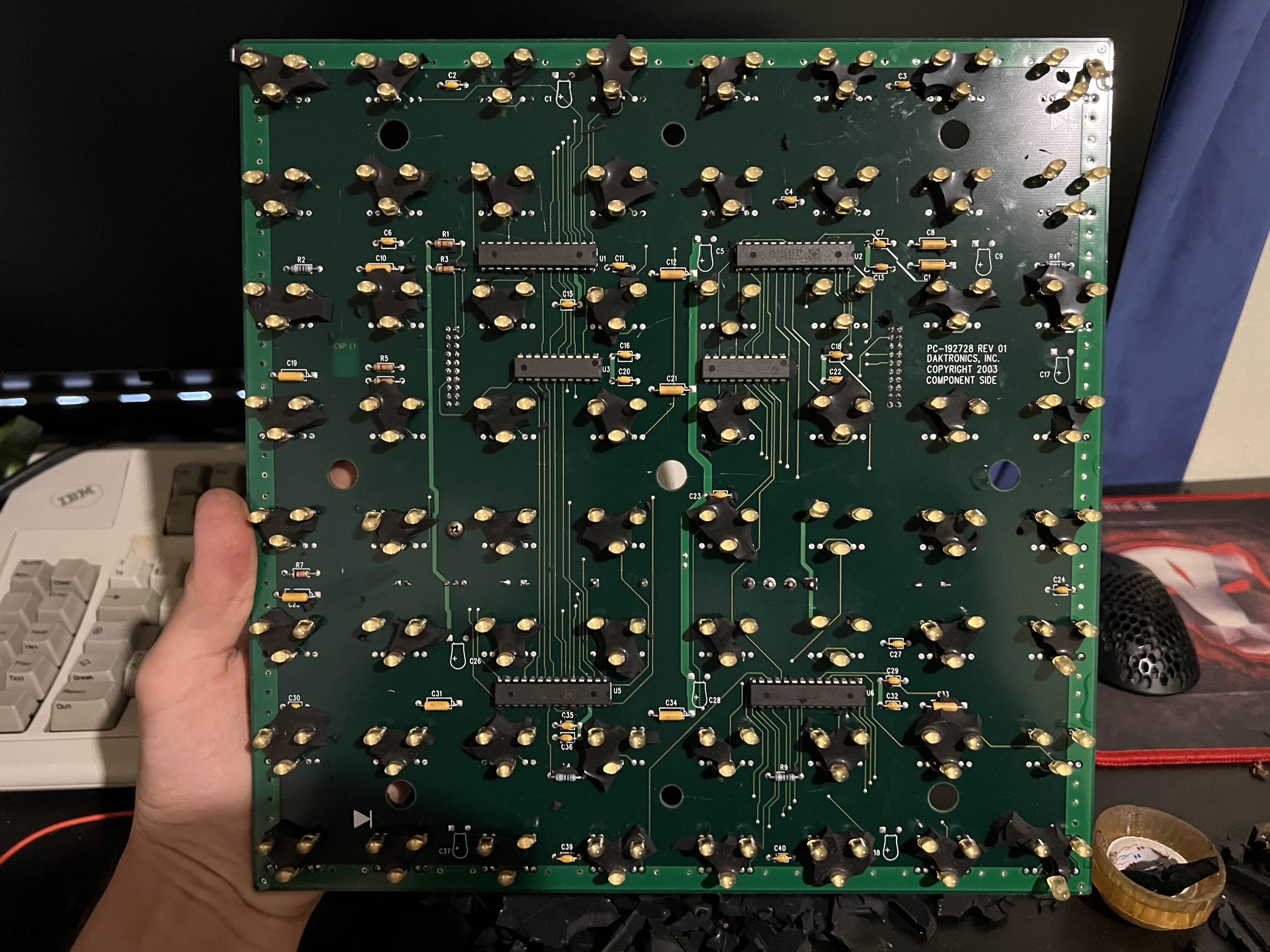 This project started when I found parts from a decommissioned scoreboard jumbotron used in the 2004 Olympic games. I decided to pick up a dozen panels and cables to try and make my own controller since I wasn’t able to find their original controller nearby and they were like $5,000 on ebay :I