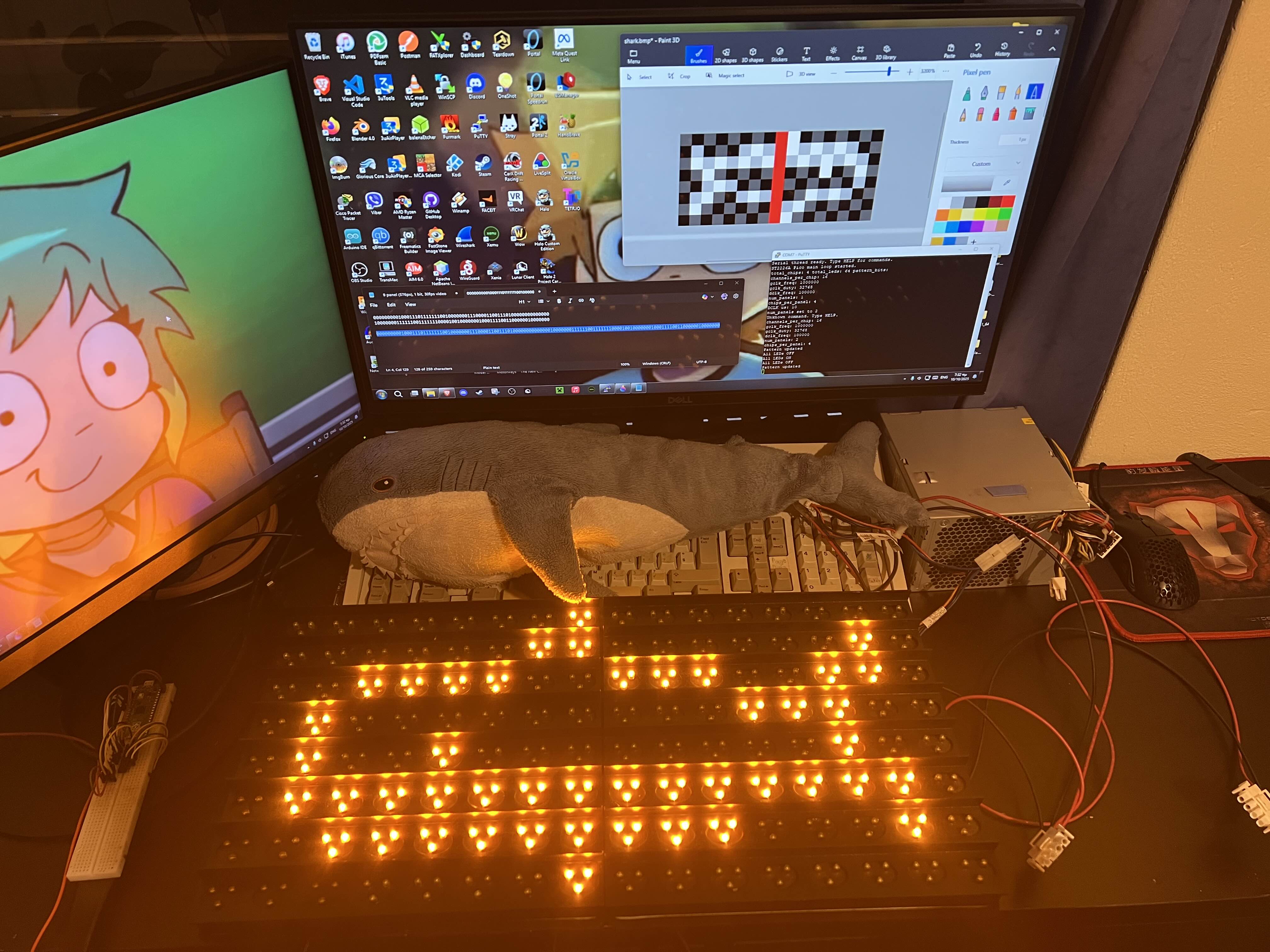 From there I was able to write a micropython firmware for my Pico using the ST2226A’s datasheet as reference. Getting the timings down is what took the longest. In the future I’d like to make the firmware handle high speed refreshes more gracefully to be able to play smooth animations and add a grayscale mode to take advantage of the ST2226A’s 1024 brighness levels. This will probably require rewriting the firmware to use PIO to toggle pins simultaniously or maybe even try making an FPGA based controller? The way you change settings or update what’s being is displayed is by sending commands via the serial port eg. set dclk_freq 100000 or pattern 101010101010101…