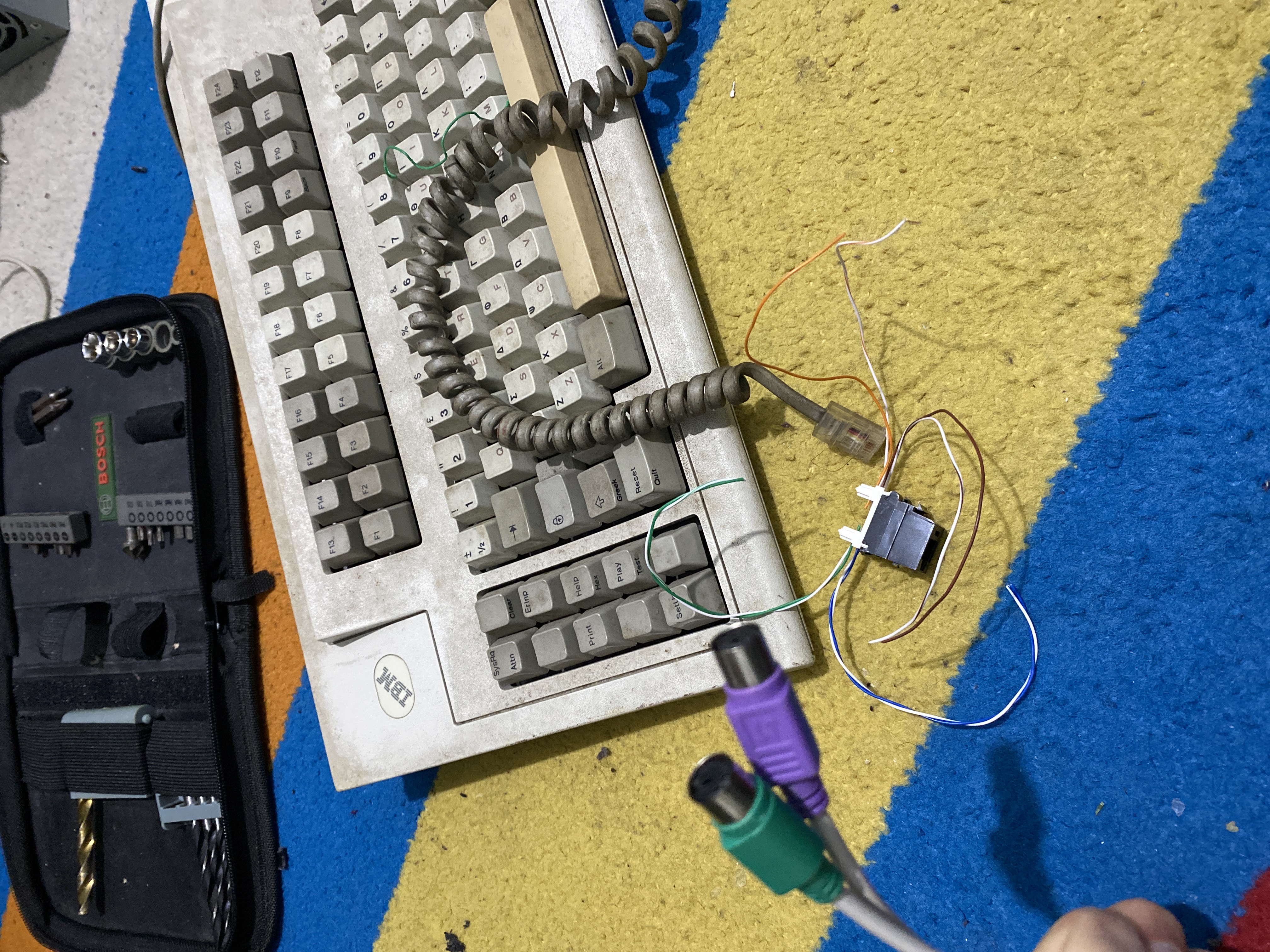 Initially I tried to make an adapter using a spare RJ45 keystone jack I had and a PS/2 → USB dongle, but quickly found out this keyboard was, in fact, not PS/2. When I plugged it in it kept repeating keys and acting weird.