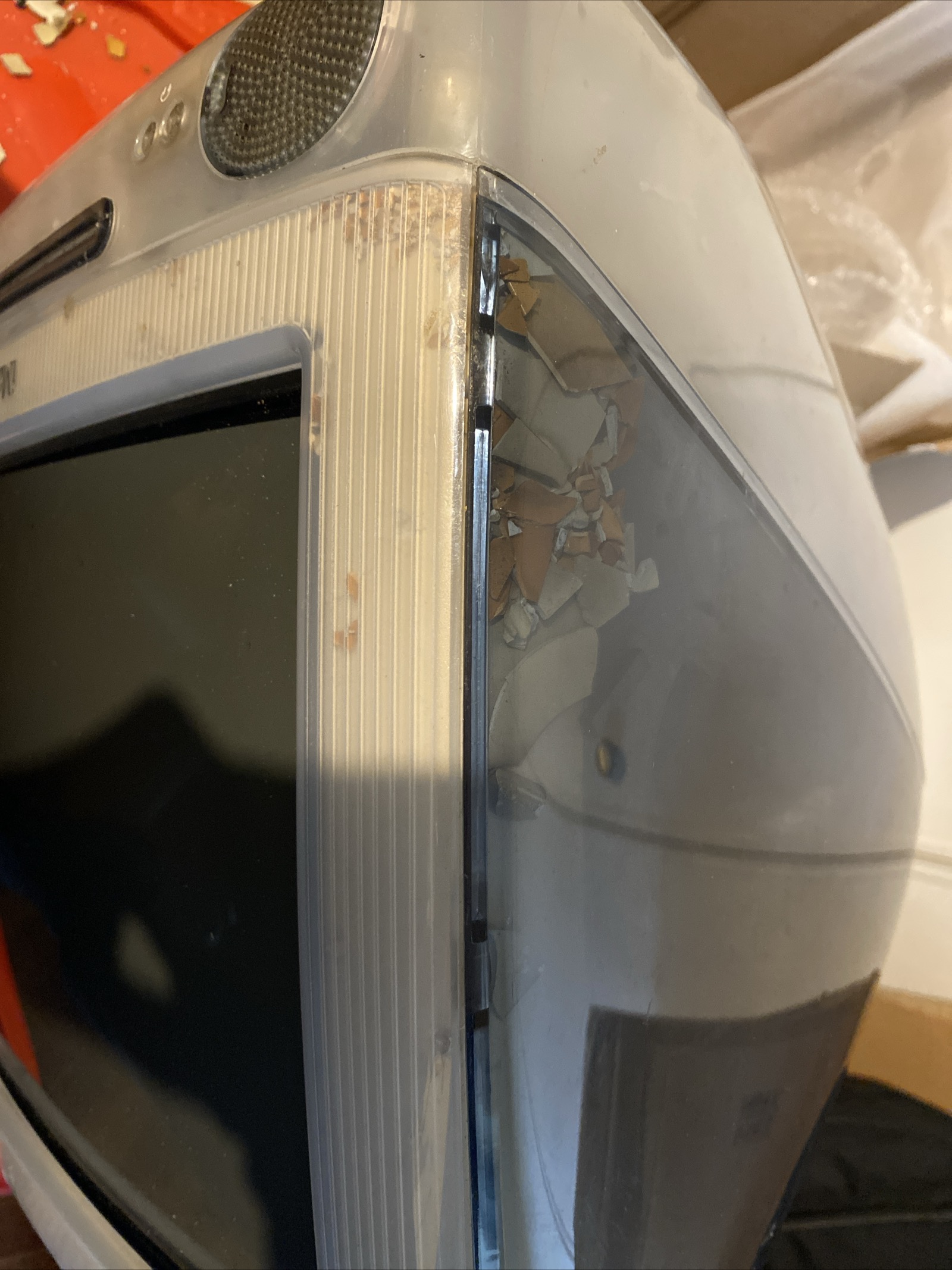 This is actually a tale of 2 iMac G3’s. A 600Mhz Graphite I got from Ebay and a 350Mhz Indigo from Facebook Marketplace. First off, we got the Graphite. It sadly got demolished in shipping :( The inner bezel on all slot loading iMac G3’s has become really brittle over the years because of the fire retardants Apple put in the plastic (according to Google). Meaning iMac G3’s can’t really be shipped without becoming 1000 piece jigsaw puzzles… I learnt that the hard way…